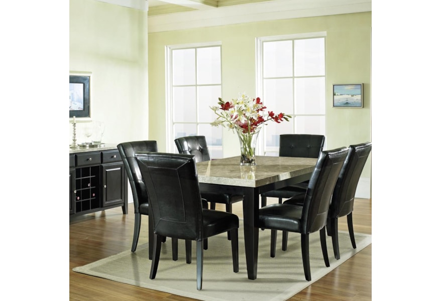 Steve Silver Monarch 7 Pc Marble Veneer Top Leg Table With Parson